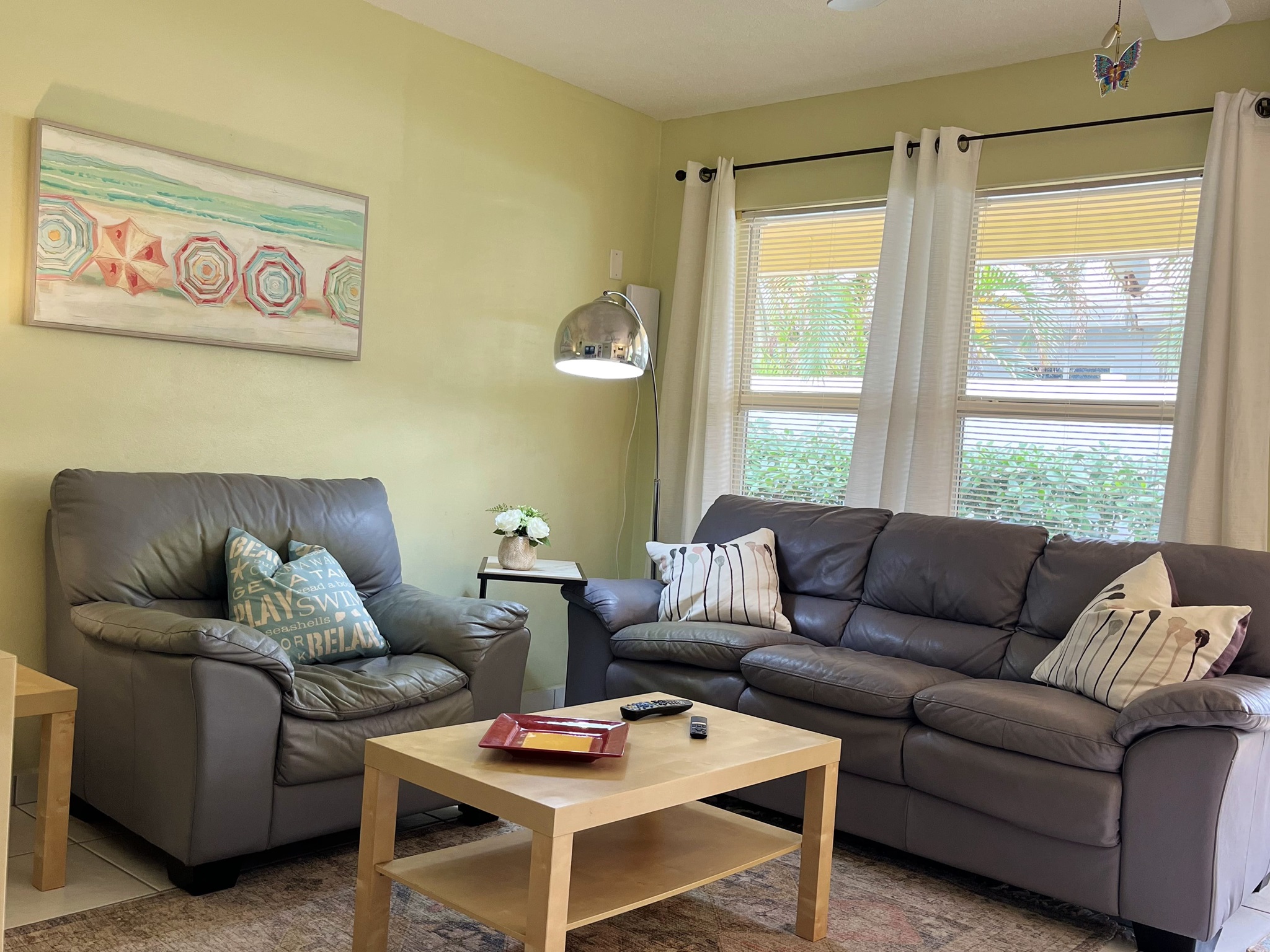 Wohnzimmer, Küche, Essbereich, Schlafzimmer mit Kingsize Bett Badezimmer, Klimaanlage, WLAN und Kabel-TV.